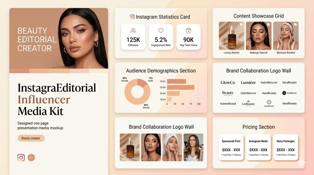 If you create content across multiple platforms, or if you’re just getting started on Instagram, check out the broader guide on influencer media kits for a full breakdown of how to structure a kit that covers all your channels.